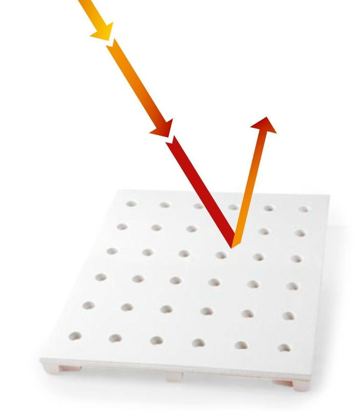 Os esmaltes cerâmicos escolhidos, branco e prata, autolaváveis ao longo do tempo, são altamente refletores dos raios solares, reduzindo o efeito "ilha de calor".